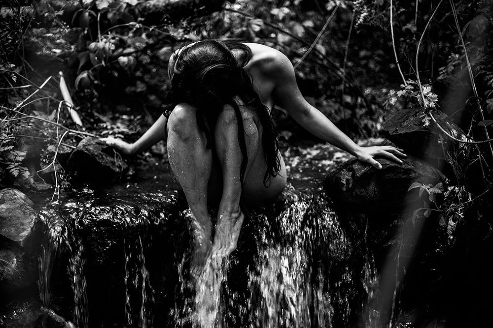 In the following piece the water permeating through the ancient stone of the Jordan River is used as multiple mini-reflectors of the subject, and apply it to create a statement that's both bold and visually mesmerizing about the invisible separation between nature and mankind as some sort of a material output of human consciousness.
