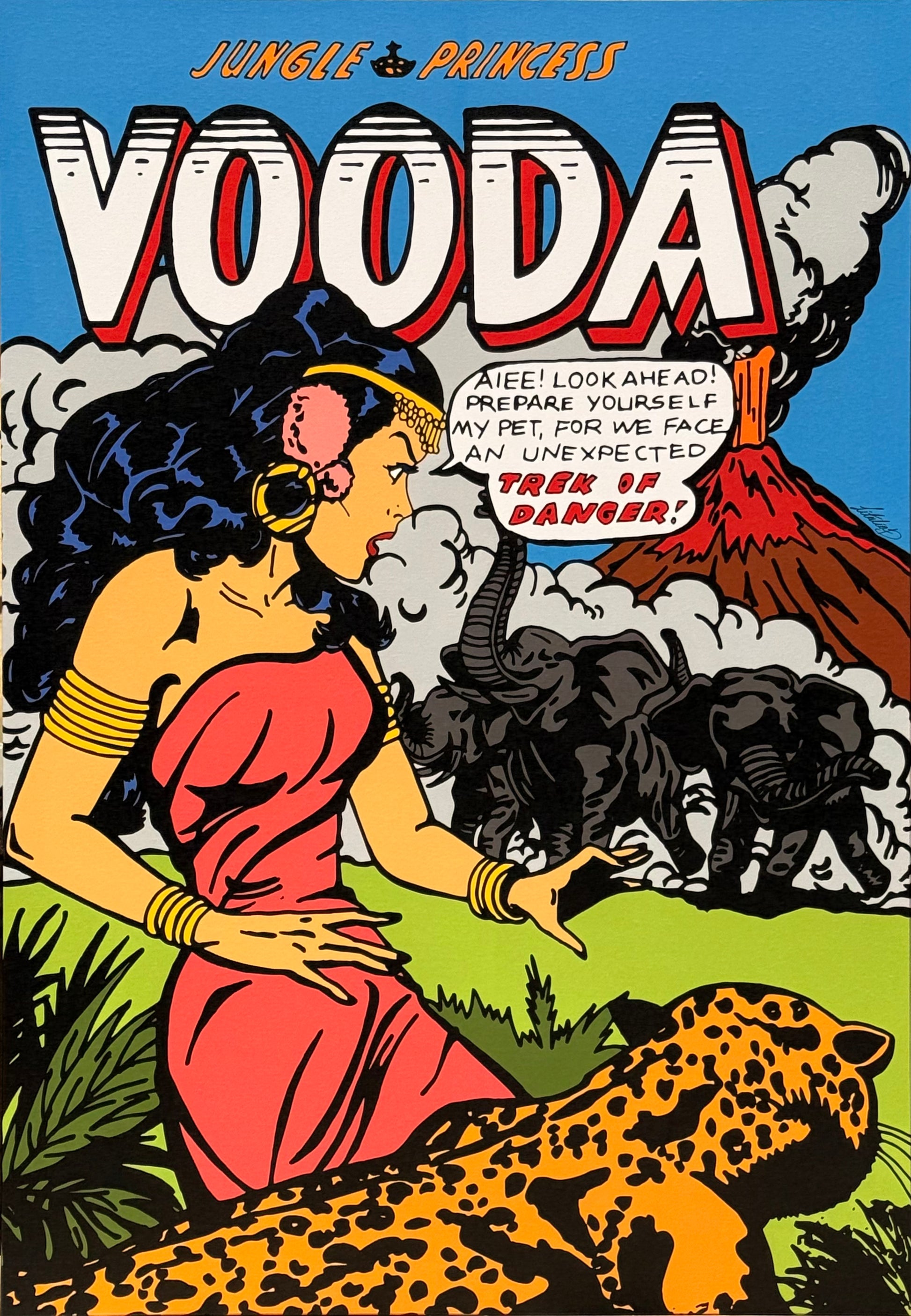 Under the Influence of comic books, Pop Art, typography, and the power of scale, this black ink drawing on paper, digitized and preserved with minimal alteration while transforming through shifts in scale, color, and composition. By layering and combining multiple works and by experimenting with printing methods and materials, Litalia D created this piece that balances meaning, materiality, and visual impact.